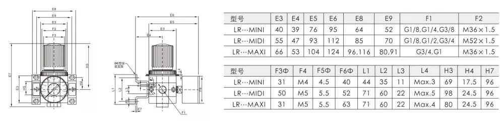 এলআর চাপ নিয়ন্ত্রকের তুলনামূলকভাবে সহজ কাঠামো রয়েছে এবং এটি সাধারণত ব্যয় সংবেদনশীল এবং কার্যকরীভাবে সহজ অ্যাপ্লিকেশনগুলিতে ব্যবহৃত হয়। বায়ু নিয়ন্ত্রকের ব্যবহার: আনলক করতে টানুন, চাপ সামঞ্জস্য করতে ঘোরান, লক করতে নীচে টিপুন