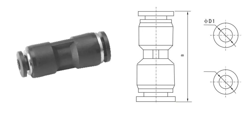 পিইউ উভয় পক্ষের একই বায়ু পায়ের পাতার মোজাবিশেষ সংযোগ করে, পিজি উভয় পক্ষের বিভিন্ন ব্যাসের সাথে বায়ু পায়ের পাতার মোজাবিশেষকে সংযুক্ত করে