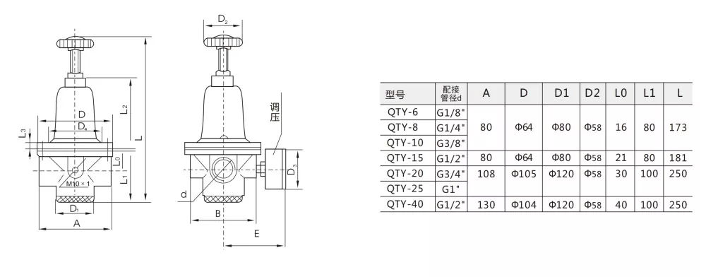 QTY: স্ট্যান্ডার্ড চাপ নিয়ন্ত্রক, স্বাভাবিক চাপ পরিসরের জন্য উপযুক্ত (মাঝারি থেকে নিম্নচাপের শিল্প অ্যাপ্লিকেশন)।