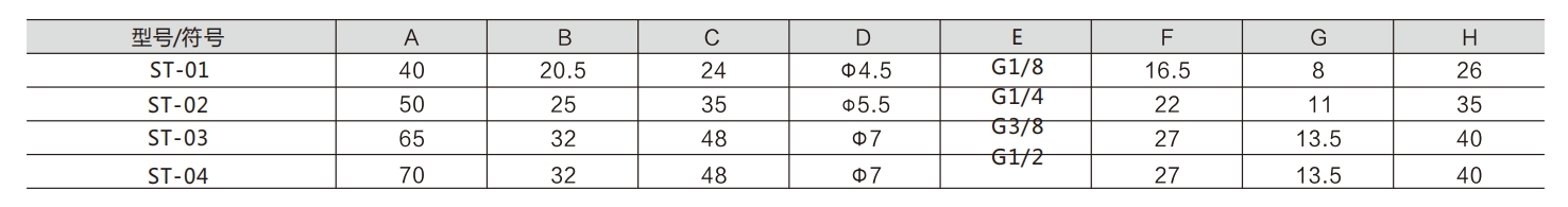 যদি এয়ার টিউব ফিটিংগুলি সঠিকভাবে নির্বাচন না করা হয়, যার ফলে কোনও বন্দরে বায়ু গ্রহণ বা নিষ্কাশন খুব ছোট হয়, তবে ভালভ কোর পুরোপুরি স্থানান্তরিত হতে পারে না, যার ফলে সমস্ত বন্দর সংযুক্ত থাকে। এটি অবশ্যই প্রতিরোধ করা উচিত। এসটি -01: জি 1/8; এসটি -02: জি 1/4; এসটি -03: জি 3/8; এসটি -04: জি 1/2